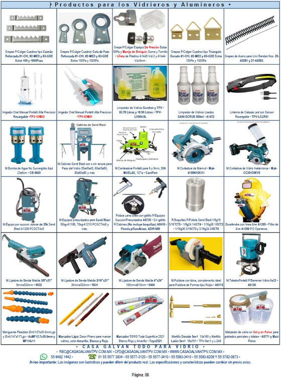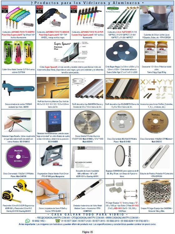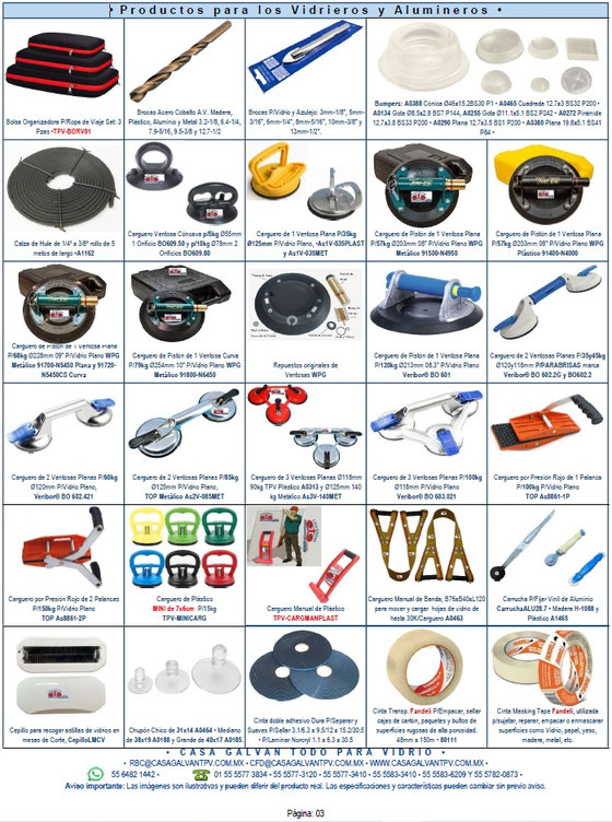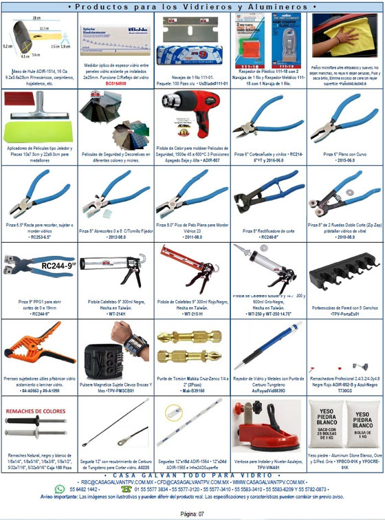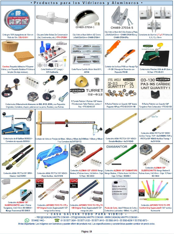 Productos para Vidrieros y Alumineros.