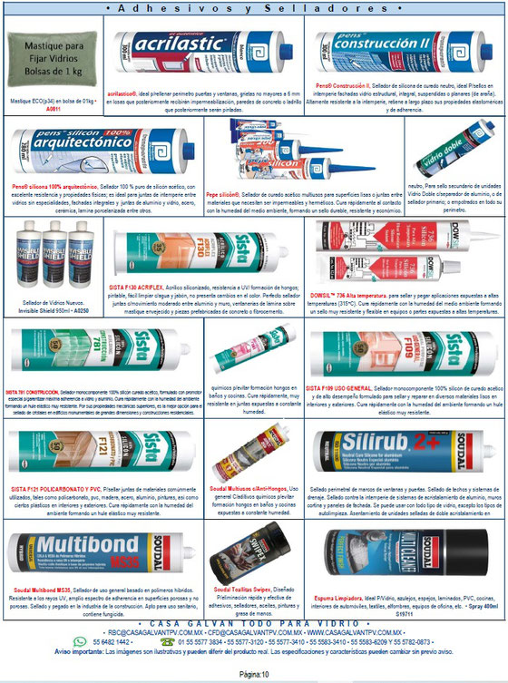 Adhesivos y selladores especializados para vidrio y espejos.